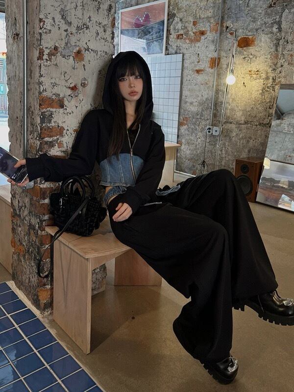 スウェット×デニム ジップアップ ショート丈トレーナー